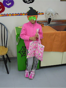 I have one student with whom I’ve been struggling almost continuously since I started teaching English with ALS. (This picture of her is from the school’s Halloween party.) She’s a cute little six-year old, but her parents are a bit older than average, and let her get away with murder at home.