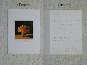 On my actual birthday, Ms. Semba and Mariya gave me this card. Here’s the text she wrote in the card: “David, You are a precious teacher of ALS, Matsuyama, and you are our nice coworker and friend. When you are sick, we are lavish with help!” Aww. π