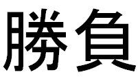 The reading for this kanji (å‹è² ) is “shoubu.” It normally means “victory or defeat; match; contest; game; bout; challenge.”