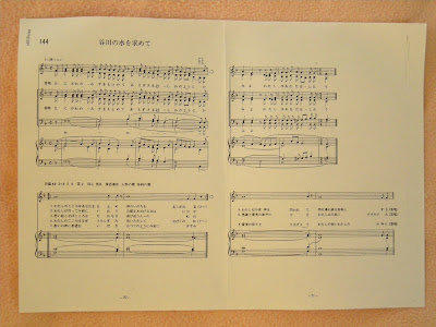 This is a piece of music in Japanese. I went to a rehearsal with a local choral group a while back called the Seagulls (not a name I would’ve chosen for a singing group, but I digress), and this was a copy the director gave me to sing with them.